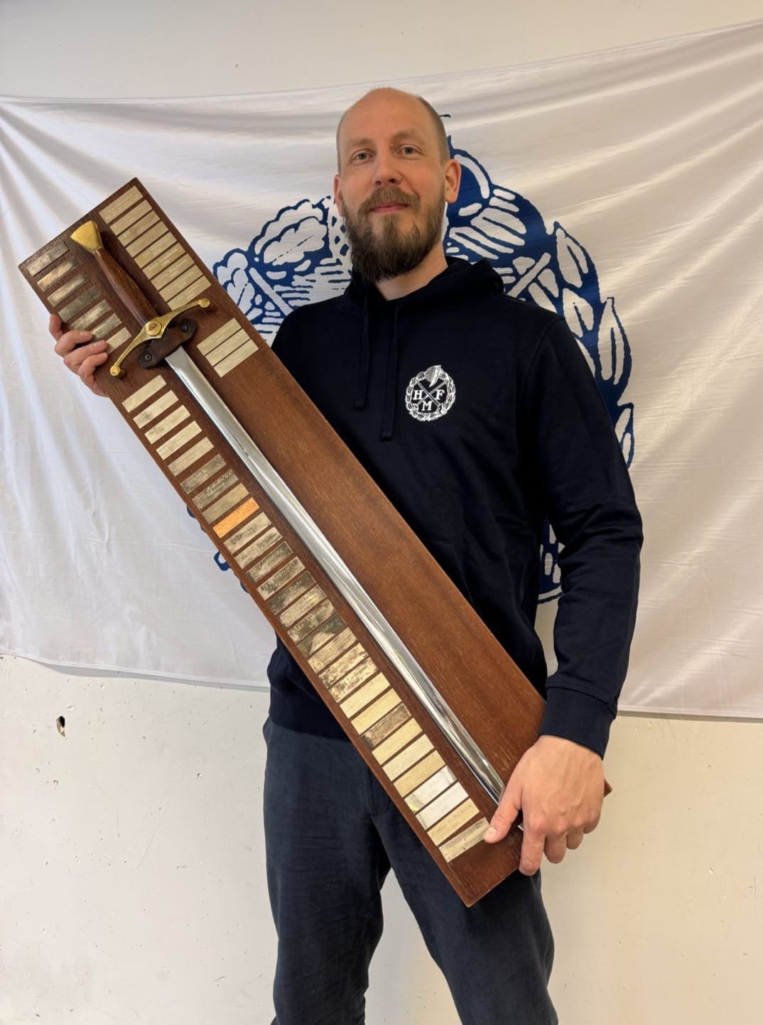 - Perustelu: Työryhmän toiminnan merkittävä kehitys. Ari Launne vastaanotti miekan työryhmän puolesta.