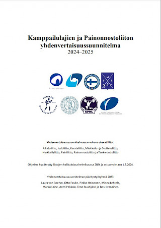 Kamppailulajiliitot ja Painonnostoliitto ovat laatineet yhteisen yhdenvertaisuussuunnitelman ensimmäisen kerran jo vuonna 2015. Suunnitelmaa on tämän jälkeen päivitetty kahden vuoden välein. Voimassa oleva Kamppailulajiliittojen ja Painonostoliiton yhdenvertaisuusuunnitelma 2024-2025 on luettavissa tästä, ja se löytyy myös liitetiedostona tämän sivun alalaidasta.