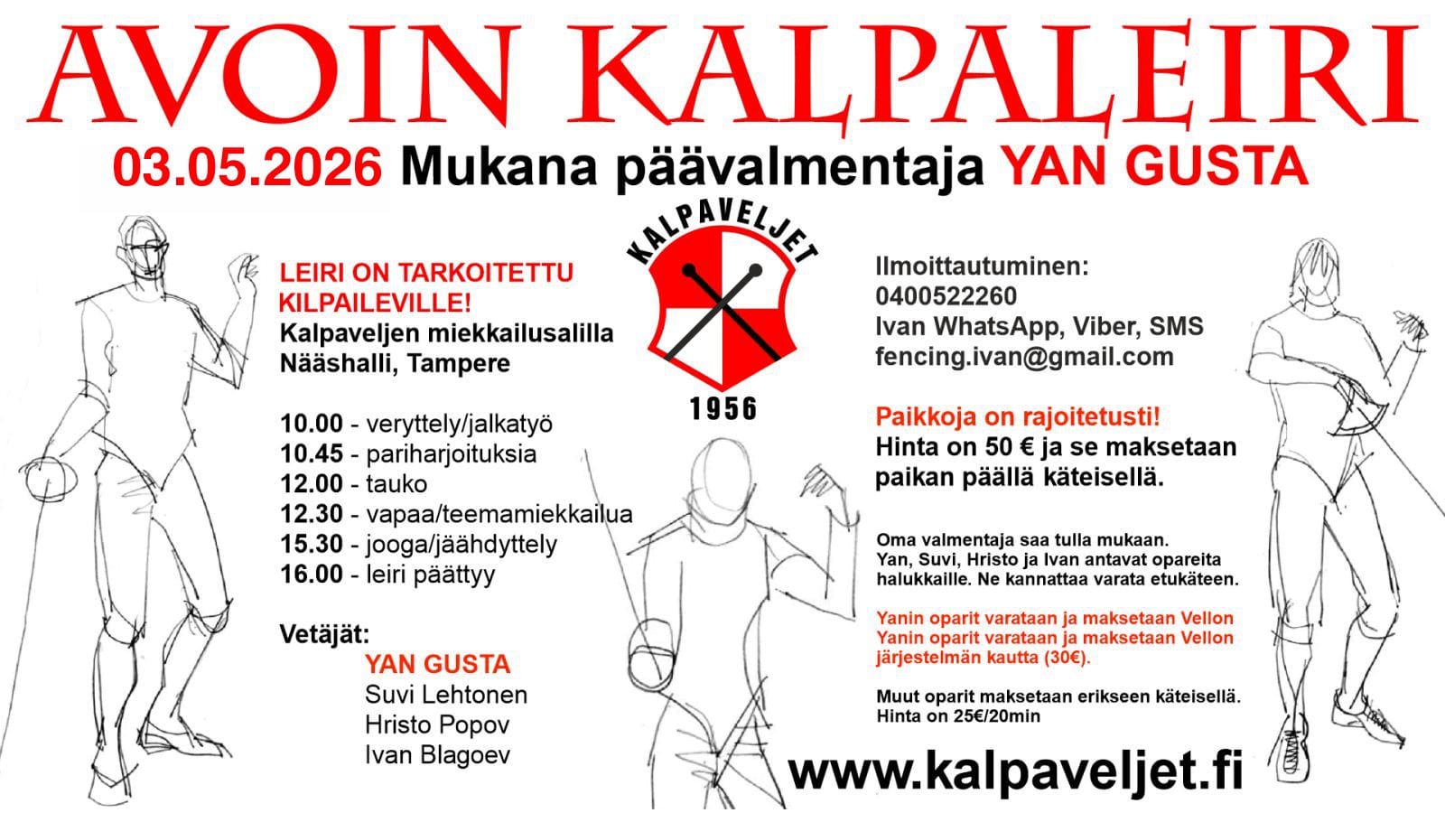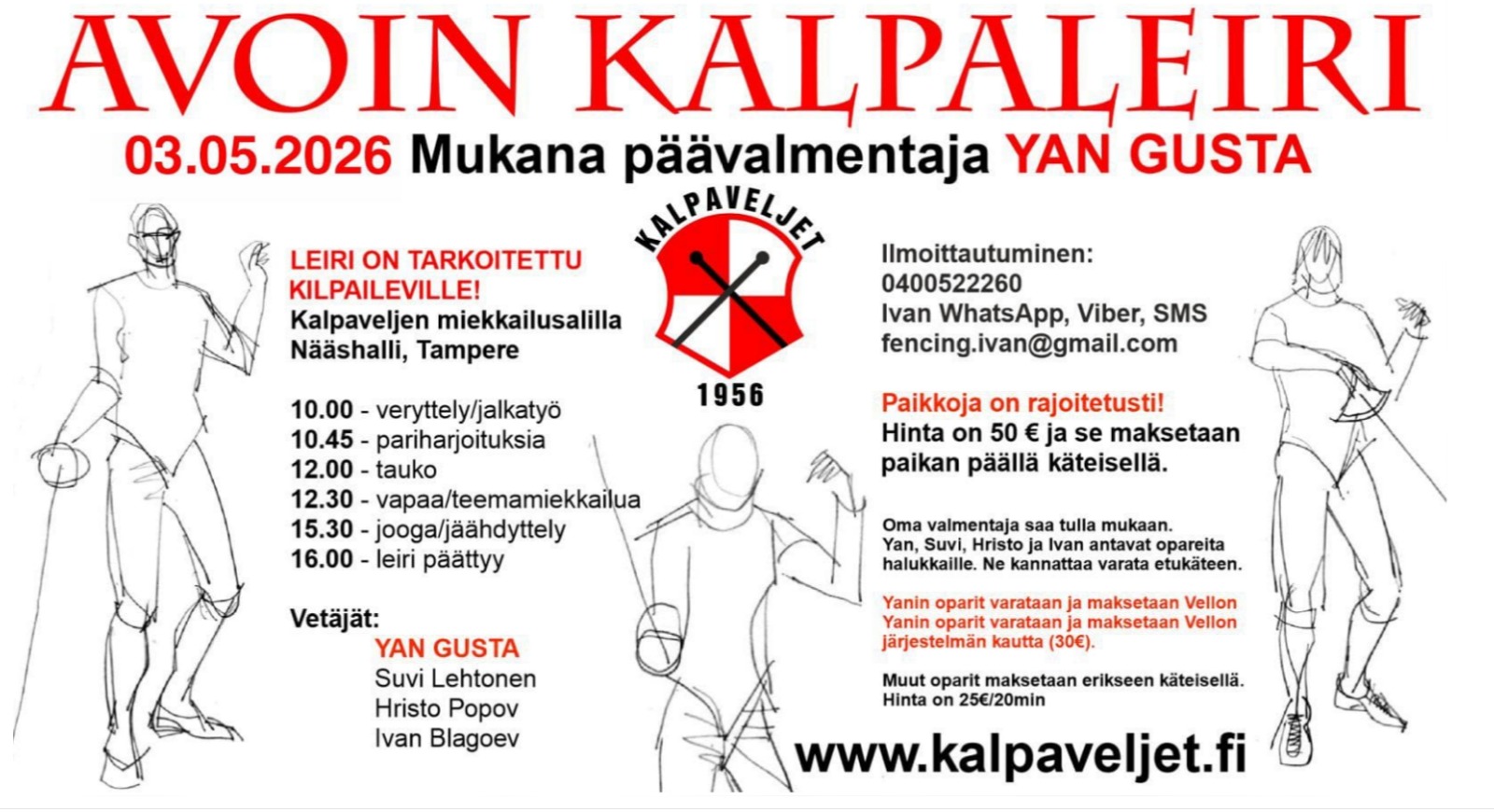 Ilmoittautuminen: fencing.ivan@gmail.com, 0400 522 260