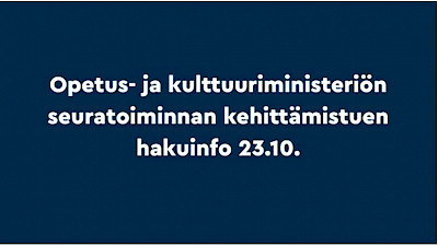 OKM:n ja Olympiakomitean yhdessä järjestämä seuroille suunnattu Seuratoiminnan kehittämistuen hakemisen info.