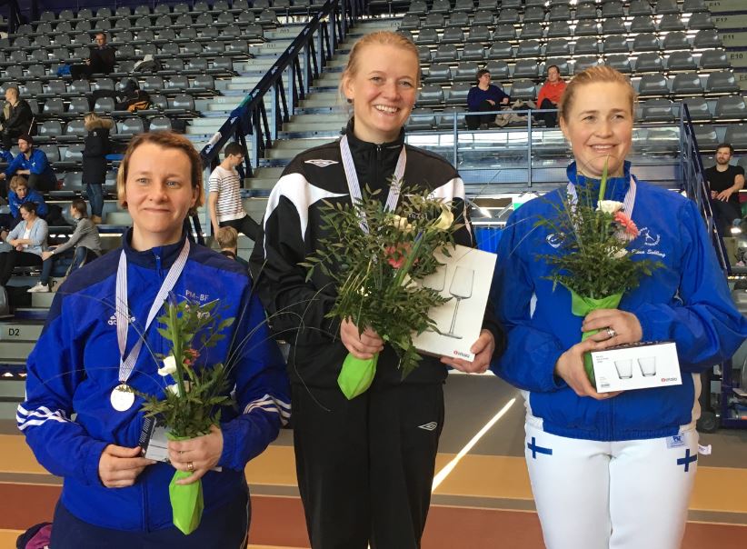 17.3.2018 Kahdeksasta mitalistista seitsemän oli suomalaisia. Nina Hyvönen (TMÅF) miekkaili PM-kultaa naisten 40+ sarjassa ja Lena Tallroth-Kock (HFM) 50+ sarjassa